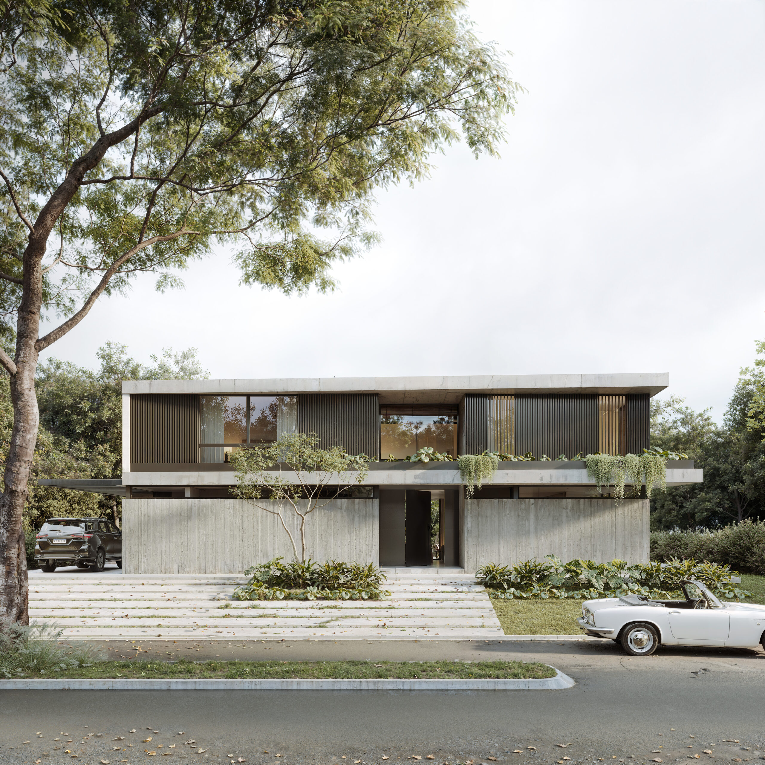 Project Solstice je dom koji pruža osećaj balansa i povezanosti sa prirodom. Eksterijer ne teži da bude nametljiv, već stvara atmosferu u kojoj svetlo, materijali i pejzaž zajedno oblikuju identitet prostora. Rezultat je kuća koja deluje prirodno, toplo i trajno — arhitektura koja prati ritam života i svetla.